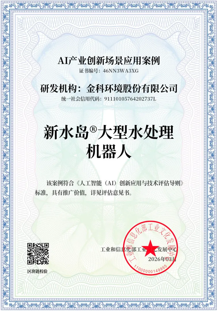 AI重塑水行业:金科环境“新水岛”获得工信部“AI产业创新场景应用案例”大型水厂机器人认证,水行业首家!